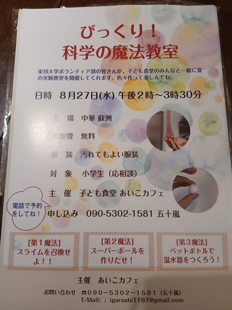 夏の実験教室 投稿日 2025-08-27 更新日 2026-01-29 著者 dona カテゴリー BLOG 東邦大学TOHOボランティア部の皆さんのご協力を得て夏の実験教室を行うことが出来ました! 最初は緊張気味の子ども達もお兄さんお姉さんの優しさに次第に打ち解け楽しみながら不思議な科学の世界を体験することが出来ました この記事を書いた人 dona 記事一覧 ウェブサイト